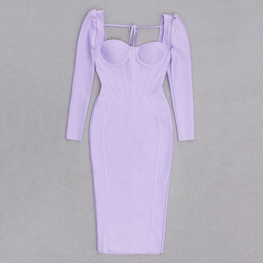 Envelop yourself in allure with the Luxe Lure Dress, crafted from a luxurious lavender fabric that offers a flawless fit. With its corset-style bodice, long sleeves, and body-hugging design, this midi dress strikes the perfect balance between elegance and seduction for your next upscale occasion.